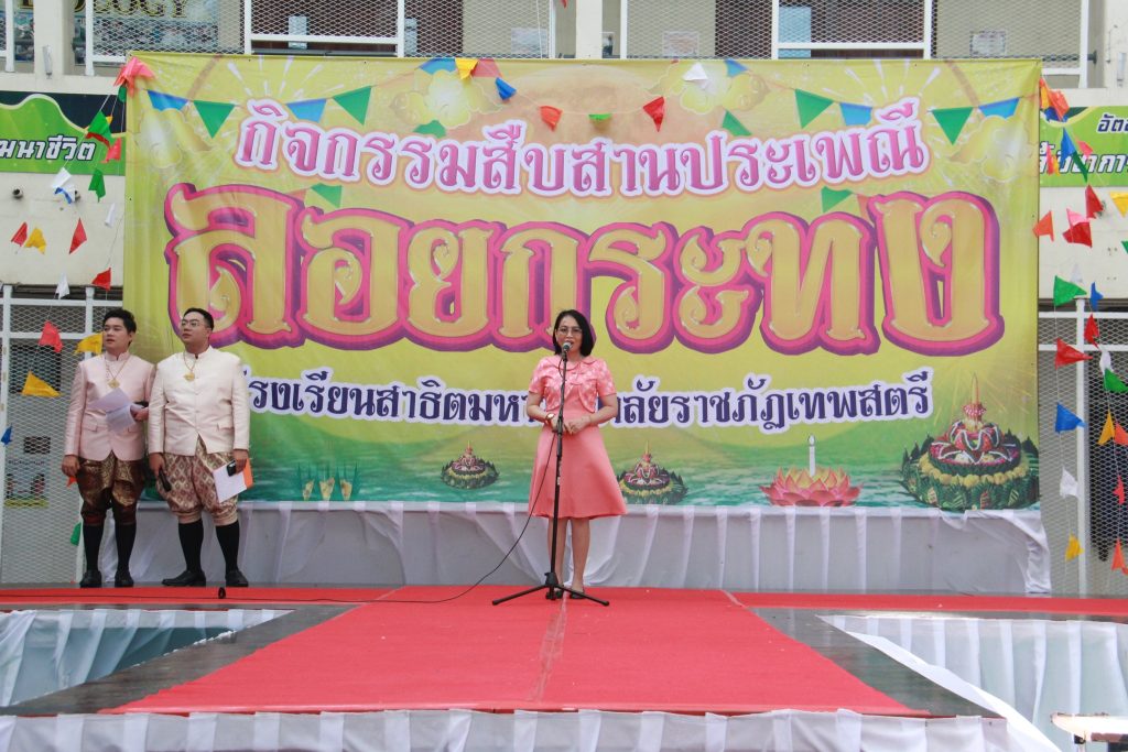 อาจารย์ ดร.บุณยานุช เฉวียงหงส์ ผู้อำนวยการโรงเรียนสาธิตมหาวิทยาลัยราชภัฏเทพสตรี ให้เกียรติเป็นประธานในการประกวด นายนพมาศและนางนพมาศ ของนักเรียนโรงเรียนสาธิตมหาวิทยาลัยราชภัฏเทพสตรี เนื่องในกิจกรรมสืบสานประเพณีลอยกระทง ประจำปี 2567
