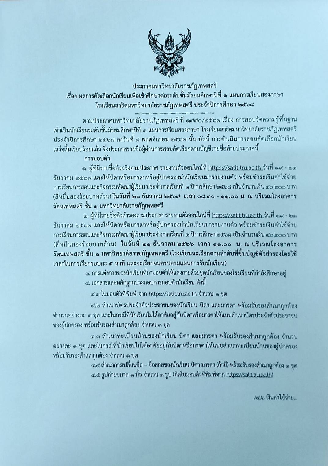 ข่าวประชาสัมพันธ์ ประกาศมหาวิทยาลัยราชภัฏเทพสตรี เรื่อง ผลการคัดเลือกนักเรียนเพื่อเข้าศึกษาต่อระดับชั้นมัธยมศึกษาปีที่ 1 แผนการเรียนสองภาษา ประจำปีการศึกษา 2568 19 December 2024 admin_nop ประกาศมหาวิทยาลัยราชภัฏเทพสตรี เรื่อง ผลการคัดเลือกนักเรียนเพื่อเข้าศึกษาต่อระดับชั้นมัธยมศึกษาปีที่ 1 แผนการเรียนสองภาษา ประจำปีการศึกษา 2568
