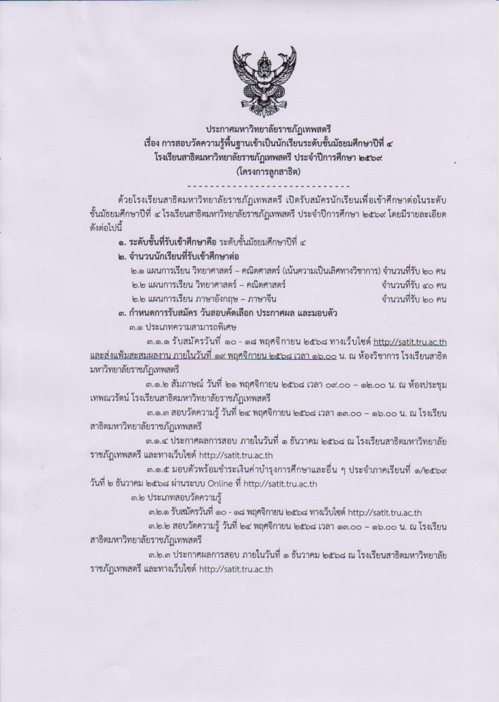 ข่าวประชาสัมพันธ์ รับสมัครนักเรียนใหม่ โครงการลูกสาธิตฯ ประจำปีการศึกษา 2569 10 November 2025 admin_nop
